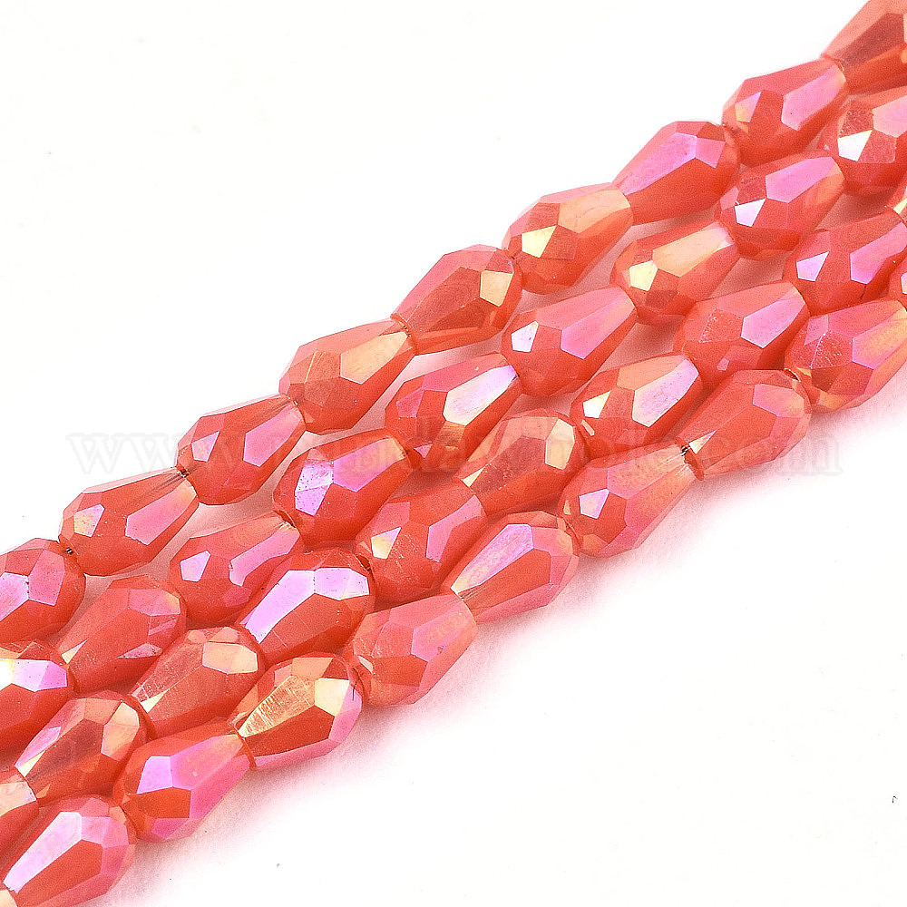 Стеклянные бусины с гальваническим покрытием , с покрытием AB цвета, Грановитая Teardrop