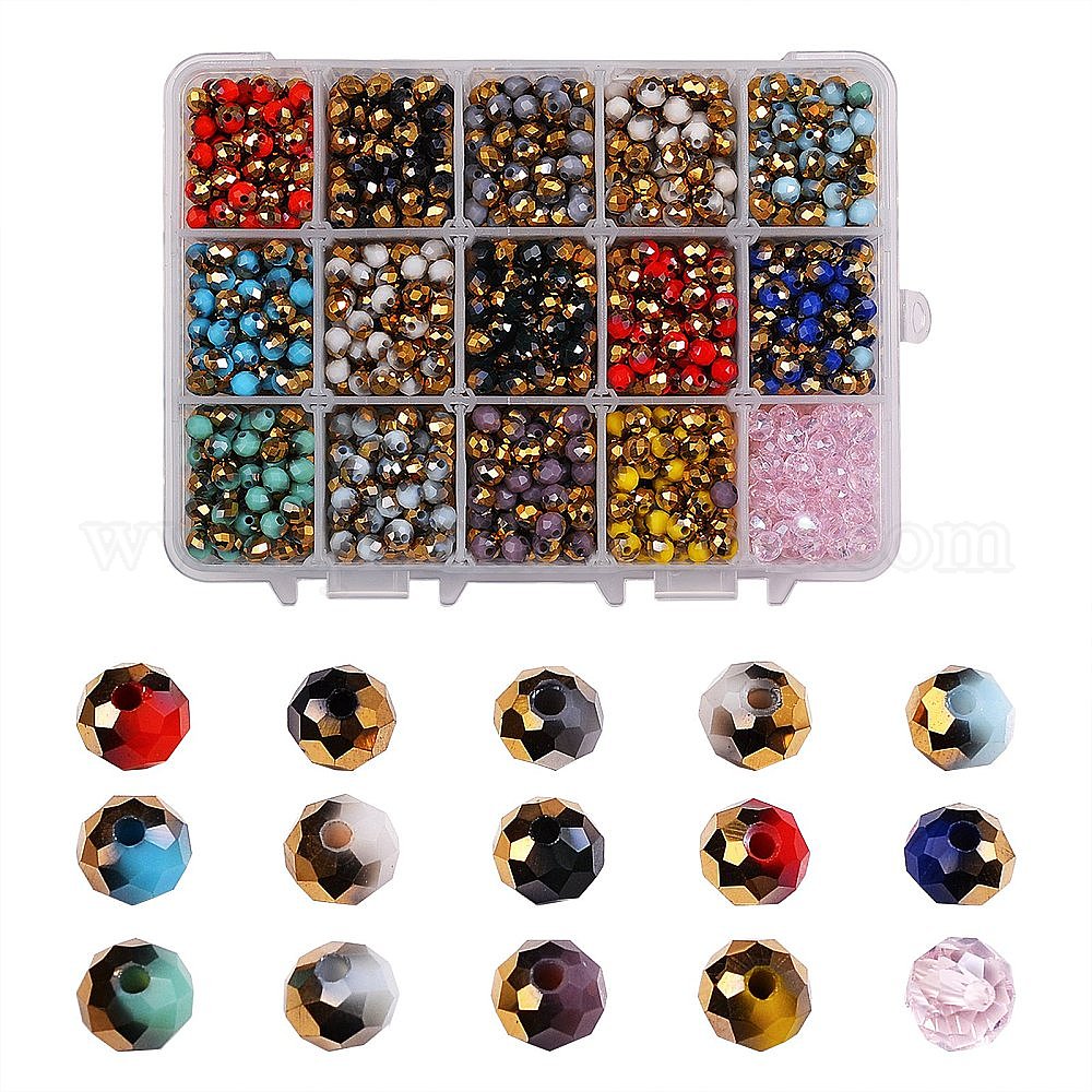 1710~1770 шт 15 цвета гальванические стеклянные бусины, граненые, шайба