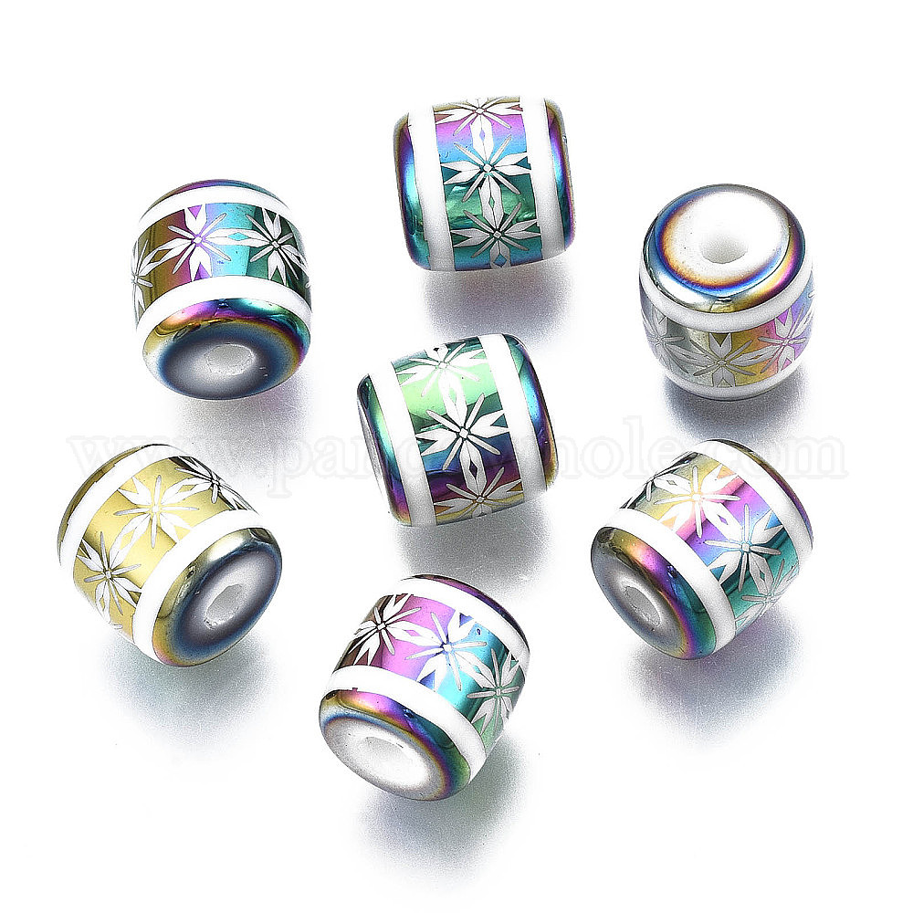 Гальванические стеклянные бусины, колонки с цветочным узором