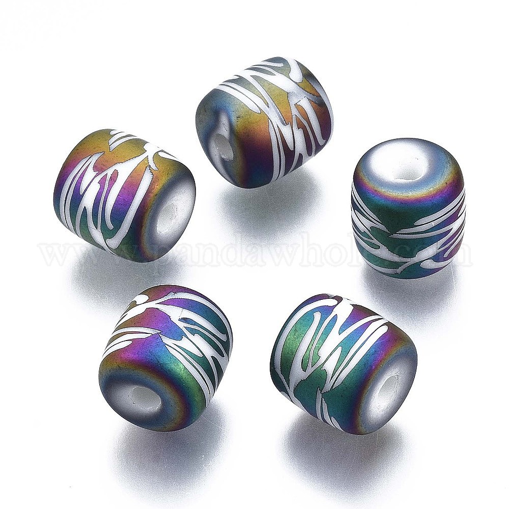 Гальванические стеклянные бусины, матовые, столбец с другим рисунком
