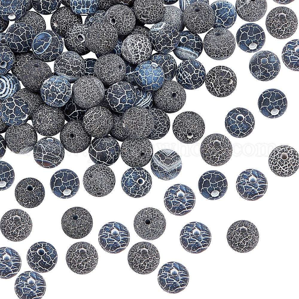 2 нити из натуральных и окрашенных бусин из кракле-агата, матовый стиль, круглые