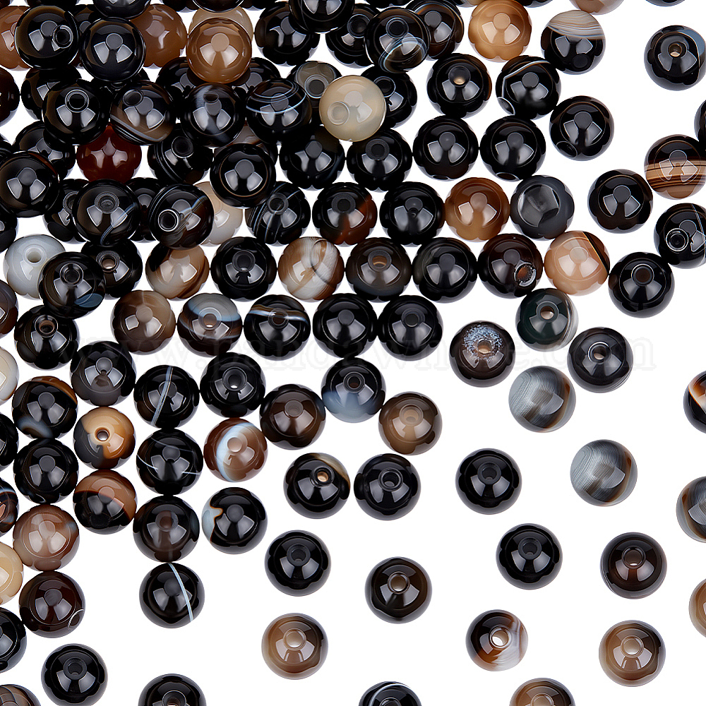 • Черный Натуральные полосатые агатовые / полосатые агатовые бусинки, окрашенные, круглые, чёрные, 6 мм, отверстие : 1 мм, около 63 шт / нитка, 14.96'' (38 см), 2 пряди / коробка