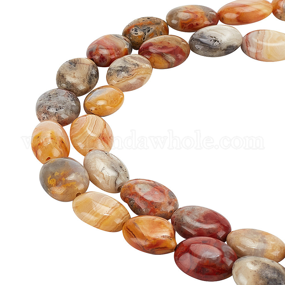 1 нити натуральных бусин из сумасшедшего агата, Плоско-овальные