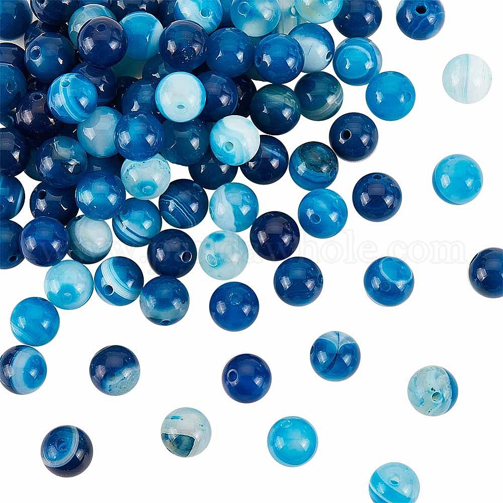 • Синий 3 нити натуральный полосатый агат/полосатый агат бусины нити, окрашенная и подогревом, класс А, круглые, синие, 8 мм, отверстие : 1 мм, около 43 шт / нитка, 15.5 дюйм