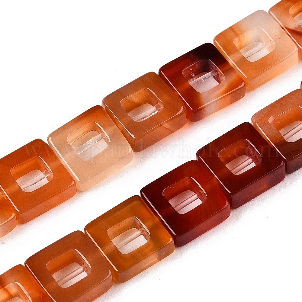 • Red Agate Натуральный красный агат бисер нитей, полый квадрат, 10x10x3~4 мм, отверстие : 1 мм, около 20 шт / нитка, 8.07 дюйм (20.5 см)
