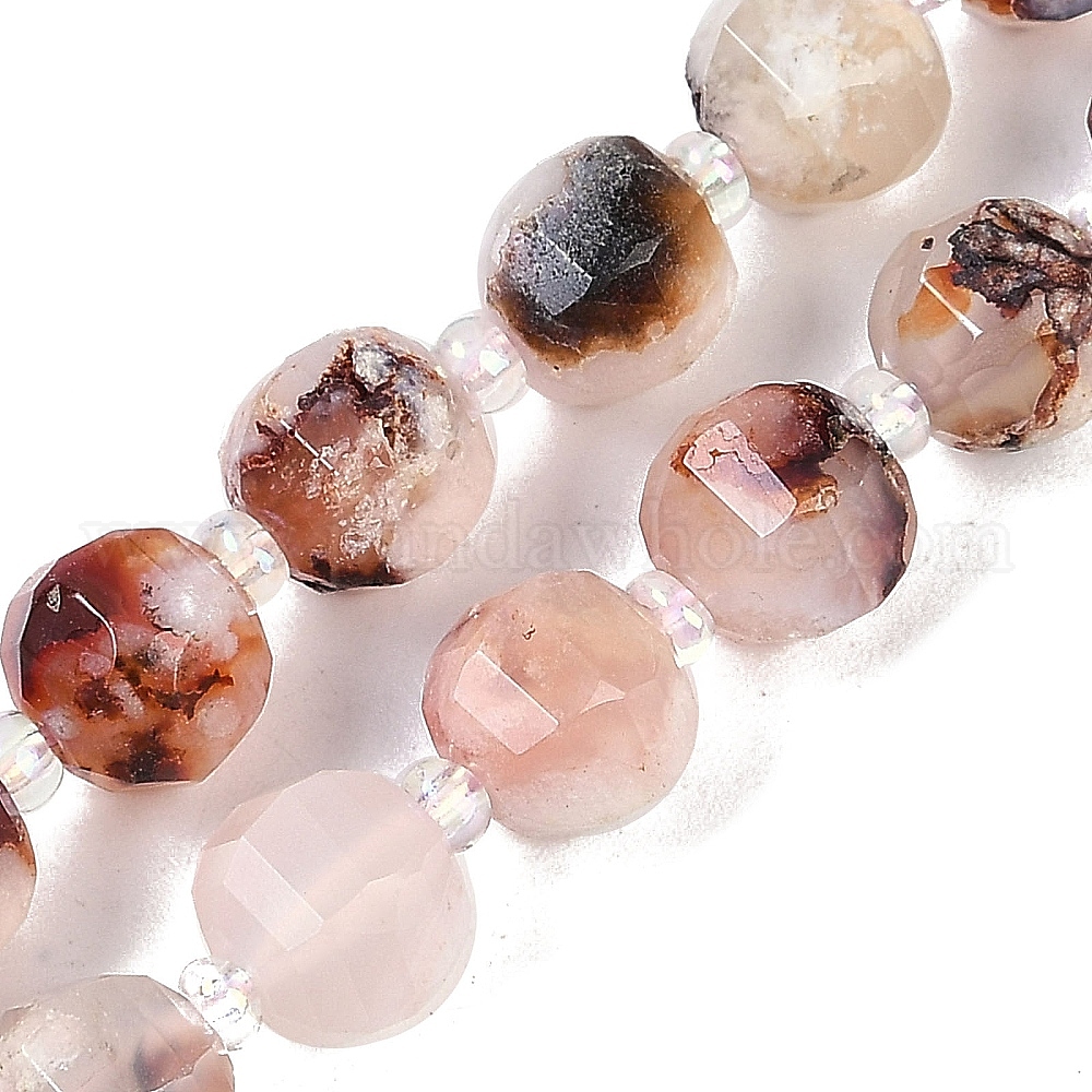 Натуральные вишневые агатовые бусины, граненые, фонарь, с бисером (02YSXJ)