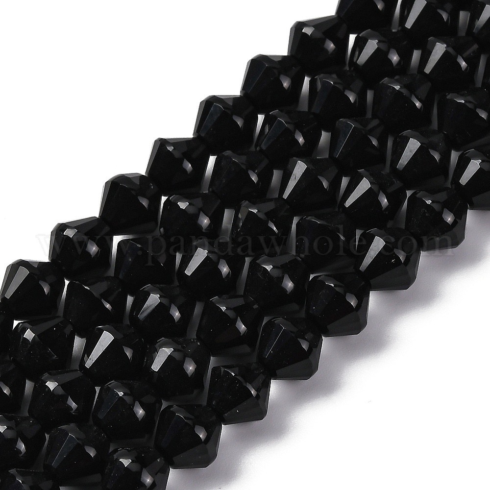Натуральные бусины из черного оникса (окрашенные и нагретые), двухконусные, граненые