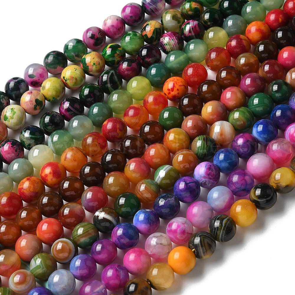 Природный агат бисер нитей, окрашенная и подогревом, круглые (02ZRP1)