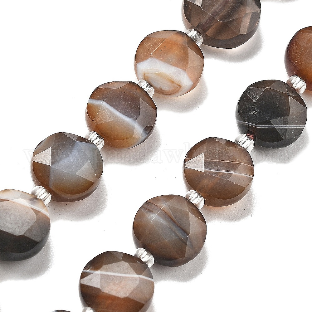Нити окрашенных и нагретых бусин из натурального агата, граненый пятиугольный разрез, плоско-круглые, с бисером