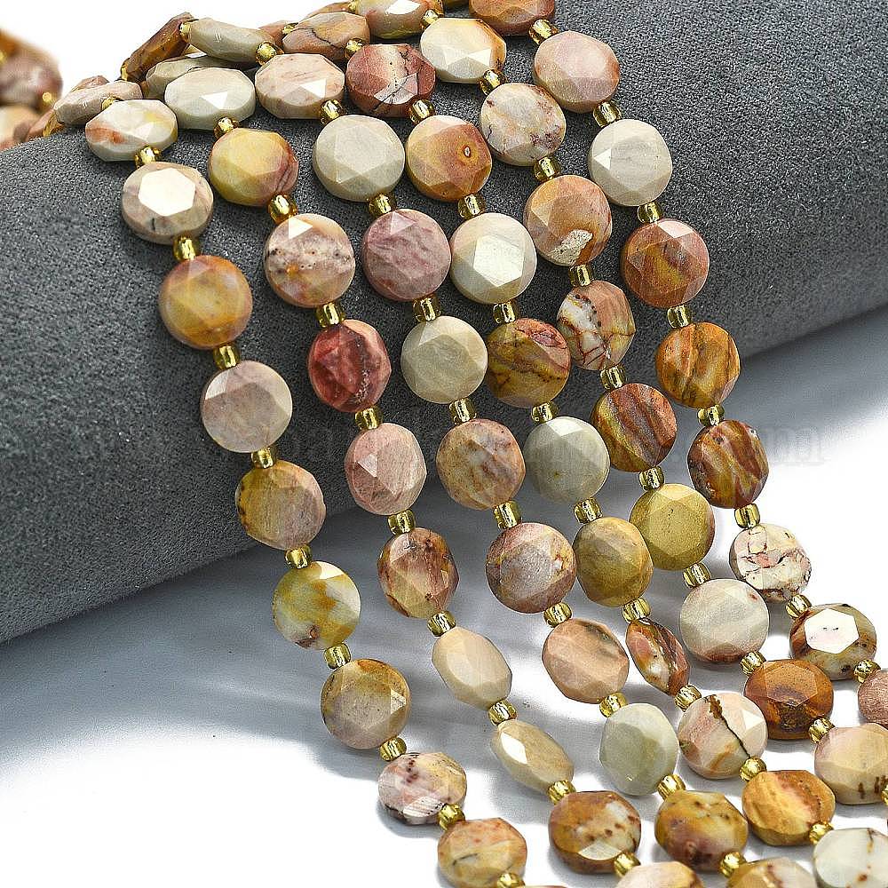 Нити из натуральных африканских агатов, граненый шестиугольный разрез, плоско-круглые, с бисером