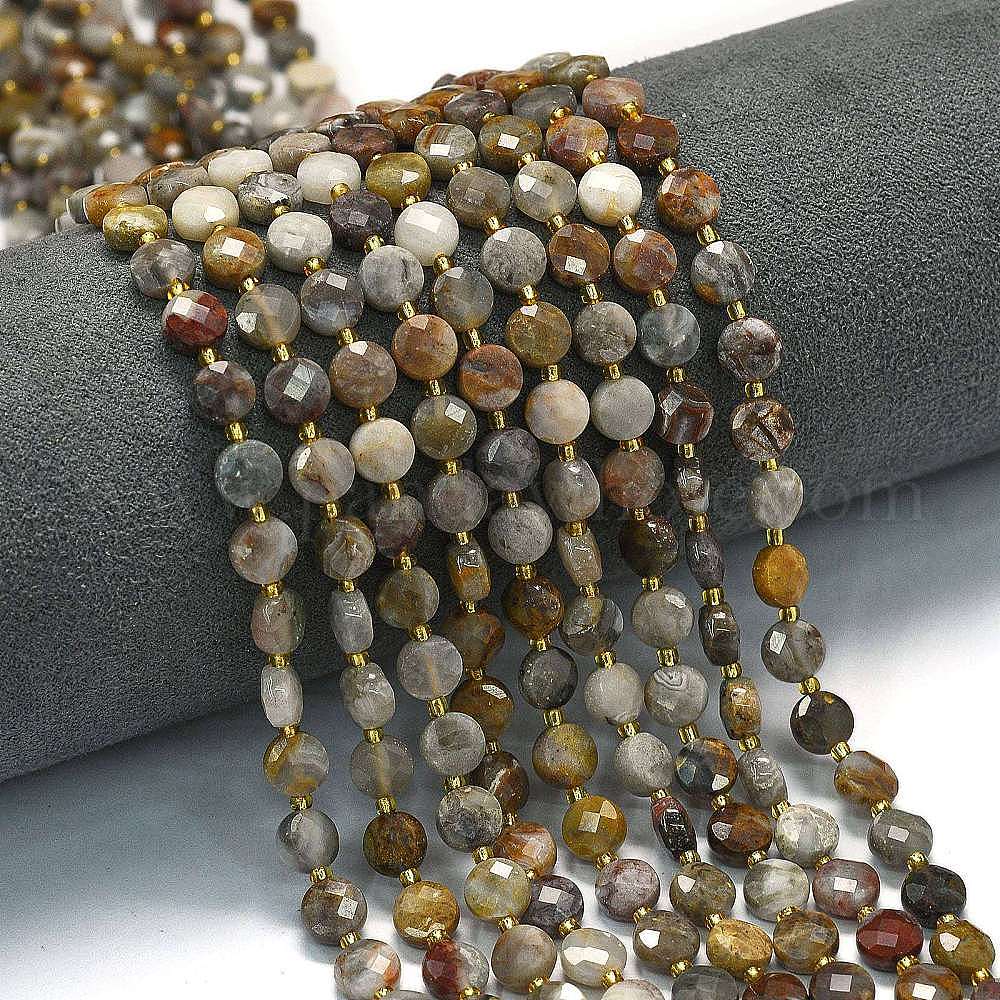 Натуральные нити бусин агата, с бисером, граненый ромб, плоско-круглые