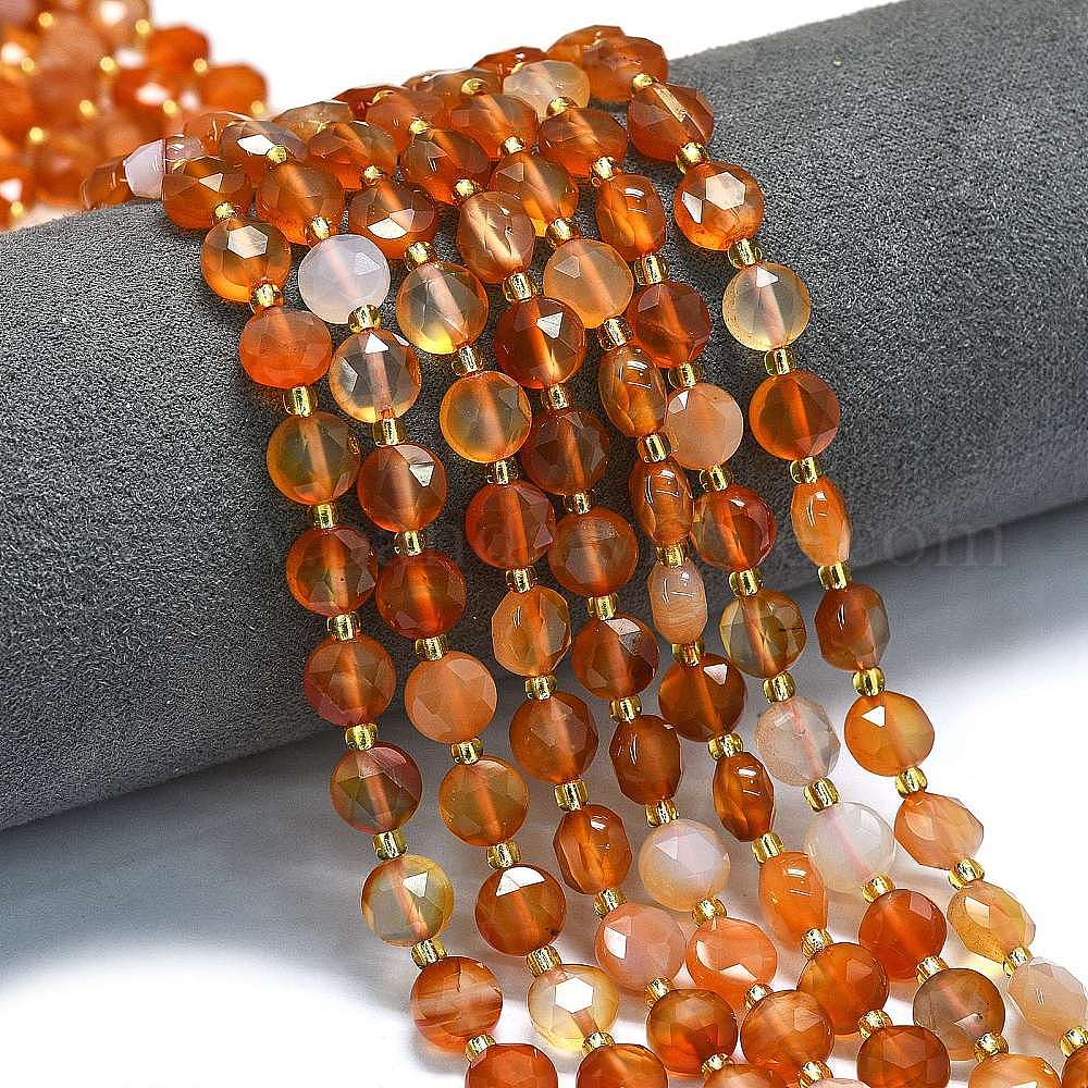 • Red Agate Натуральный красный агат бисер нитей, граненый шестиугольный разрез, плоско-круглые, с бисером, 8x5 мм, отверстие : 0.8 мм, около 36 шт / нитка, 15.16''~15.24'' (38.5~38.7 см)