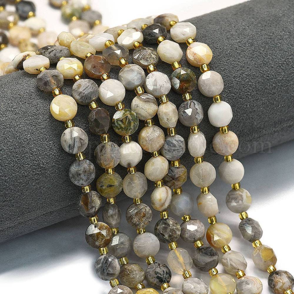 Природные бамбуковых листьев агат бисер нитей, граненый пятиугольный разрез, плоско-круглые, с бисером