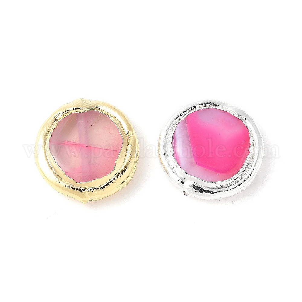 Гальванизированные натуральные полосатые агаты/полосатые агаты, окрашенная и подогревом, плоско-круглые, красно-фиолетовые