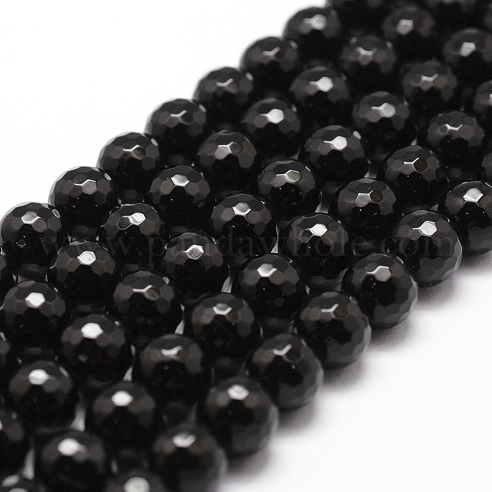 Бусины из натурального черного оникса, класс А, граненые, круглые