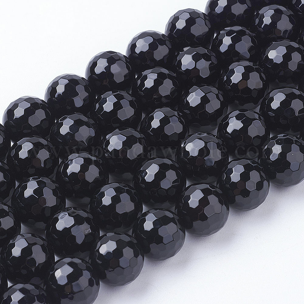 Бусины из натурального оникса, окрашенная и подогревом, граненые, круглые, 10 мм, отверстие : 1 мм