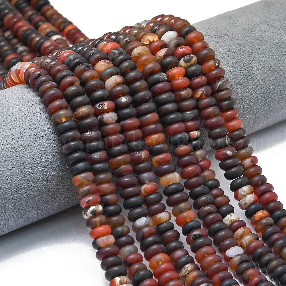 • Темно-Красный Натуральные полосатые агатовые бусы, матовые, рондель, окрашенная и подогревом, темно-красный, 8x5 мм, отверстие : 1.4 мм, около 73~75 шт / нитка, 14.96~15.16 дюйм (38~38.5 см)