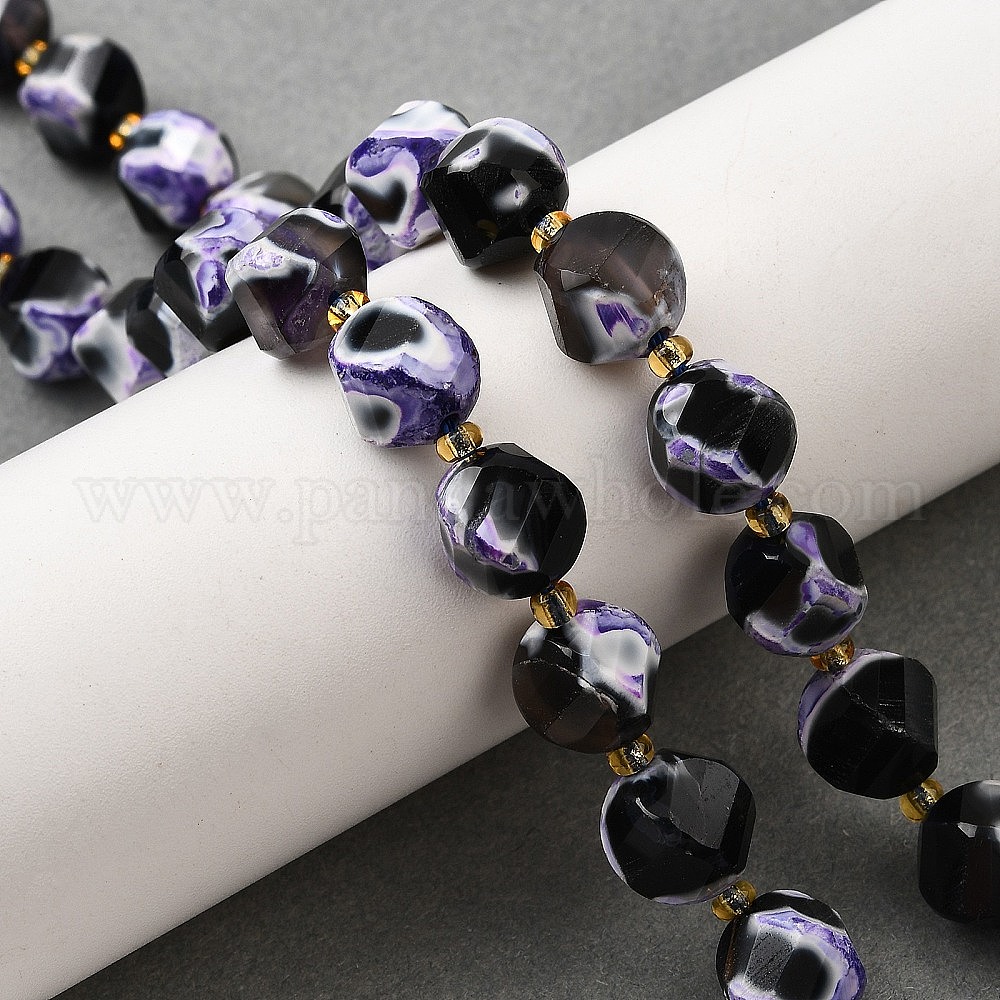 Природные пожары треск агат бисер нитей, окрашенная и подогревом, граненые, твист, с бисером