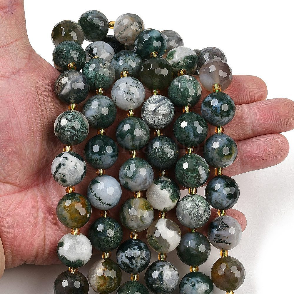 Природные моховой агат бисер нитей, граненые, круглые, с бисером