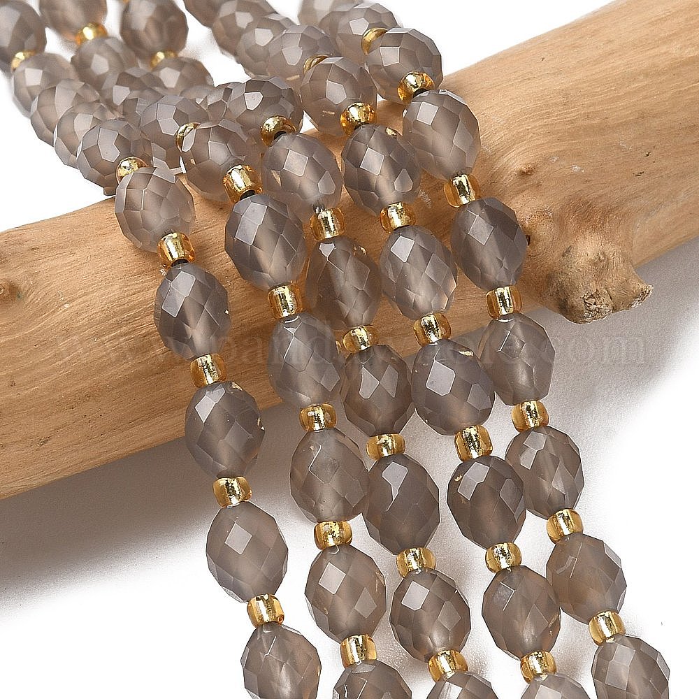• Серый агат Природные Серый агат бисер нитей, граненые, рис, с бисером, 7.5~8x6~7.5 мм, отверстие : 0.8~1 мм, около 36~40 шт / нитка, 15.55~15.75'' (39.5~40 см)