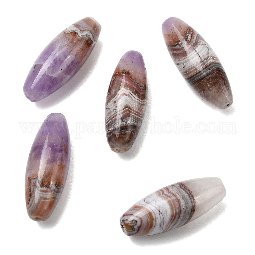 Бусины из натурального аметиста и кружевного агата, рисовые шарики