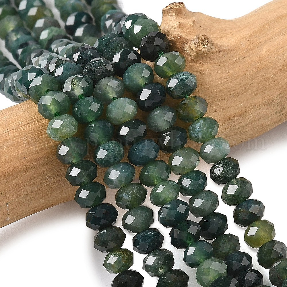 Природные моховой агат нитей бисера, граненые, рондель