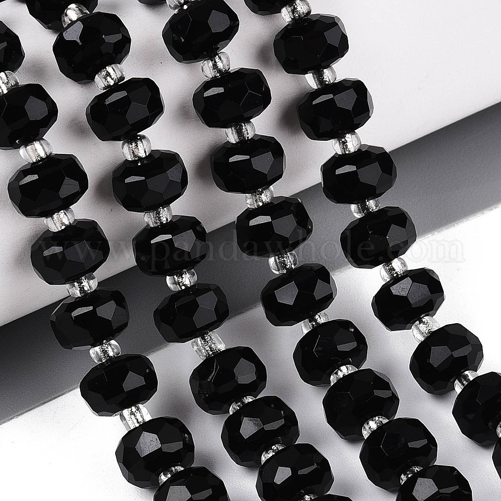 Натуральные бусины из черного оникса (окрашенные и нагретые), с бисером, граненые, рондель