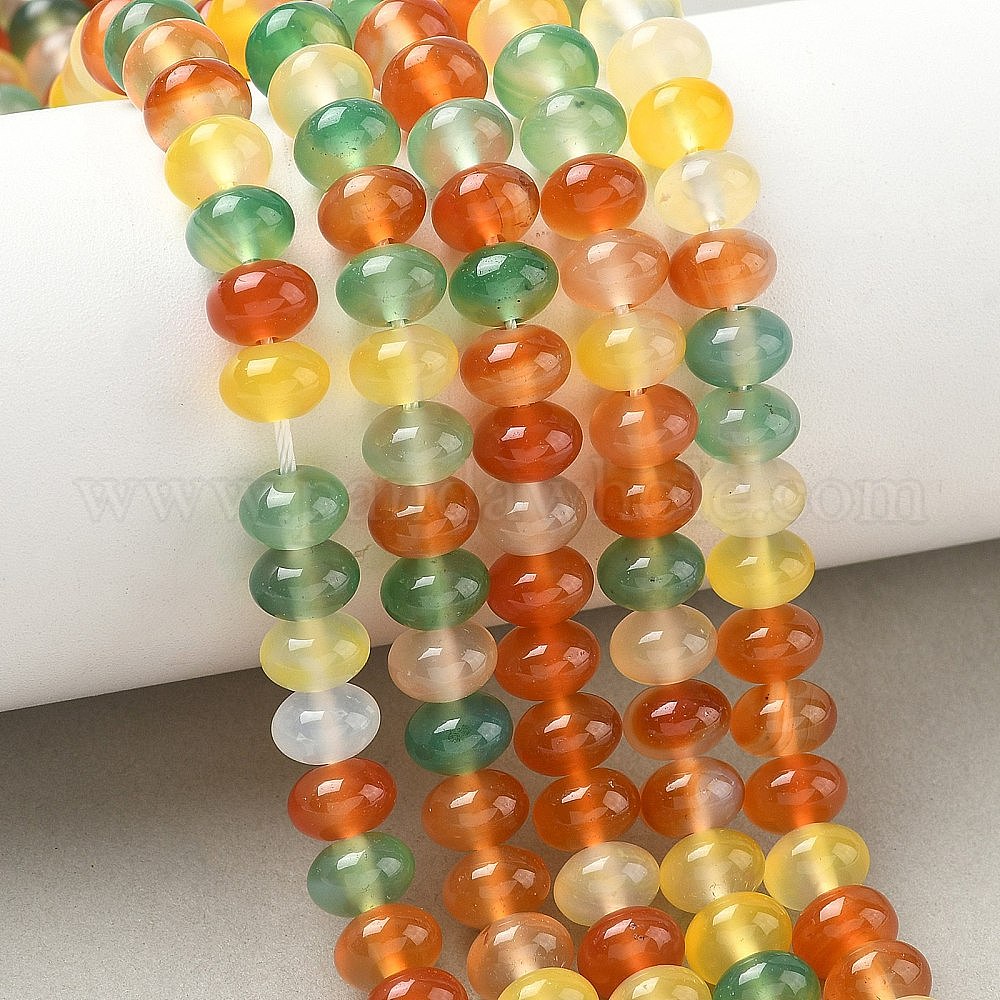 Природный агат бисер нитей, рондель, смесь крашеных и неокрашенных