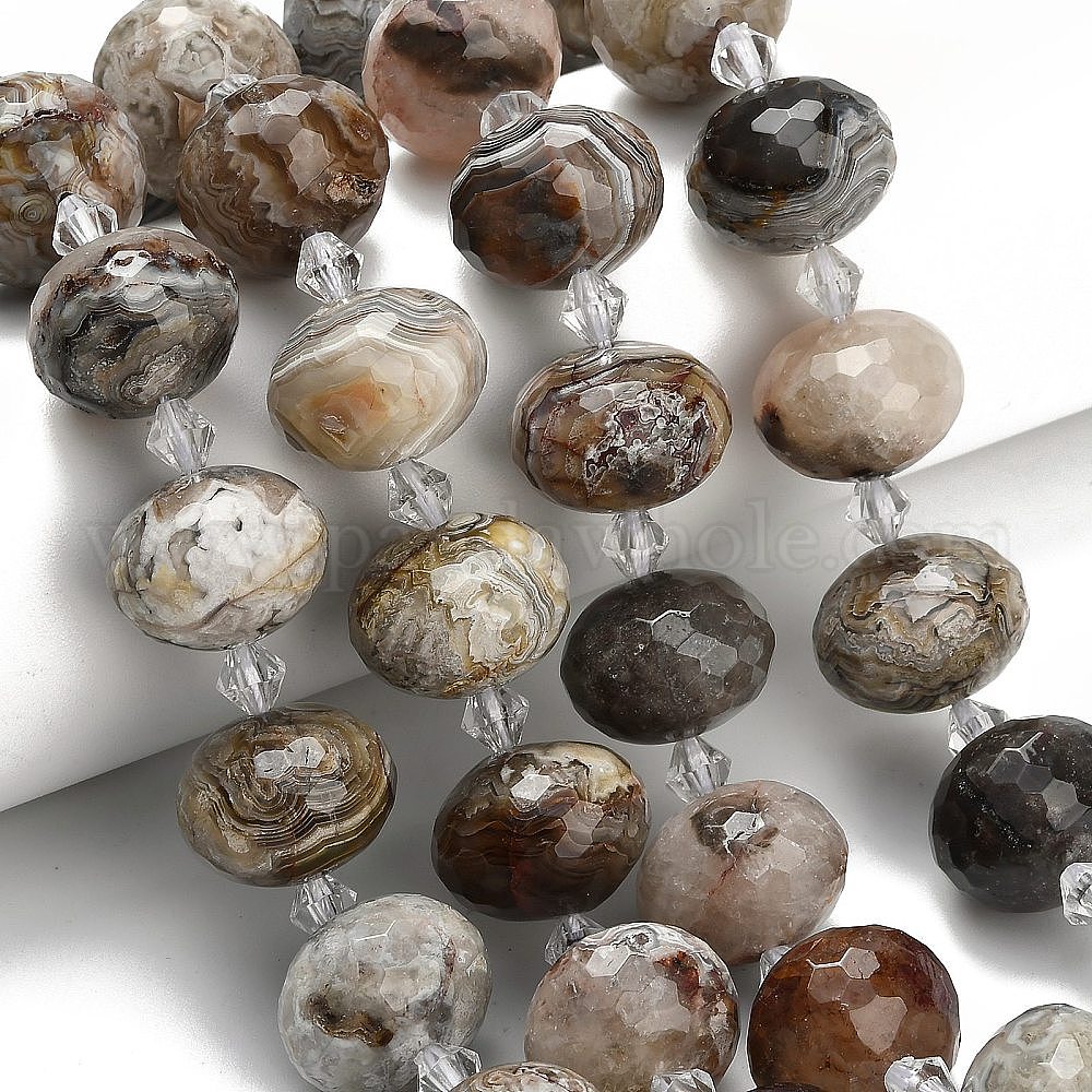 • Натуральный Агат Натуральный мексиканский агат, рондель, граненые, со стеклянными бусинами, 18x13 мм, отверстие : 1.4 мм, около 20 шт / нитка, 14.25 дюйм (36.2 см)