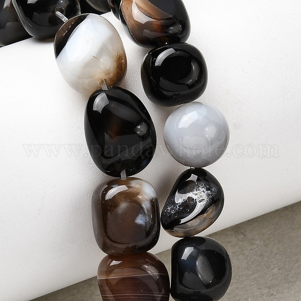 Натуральный черный агат бисер нитей, окрашенная и подогревом, самородки, упавший камень