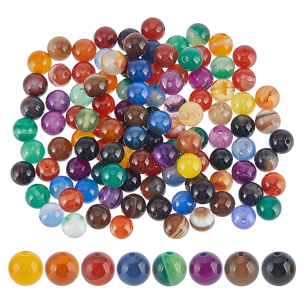120 шт. 8 окрашенные натуральные полосатые агатовые бусины, круглые
