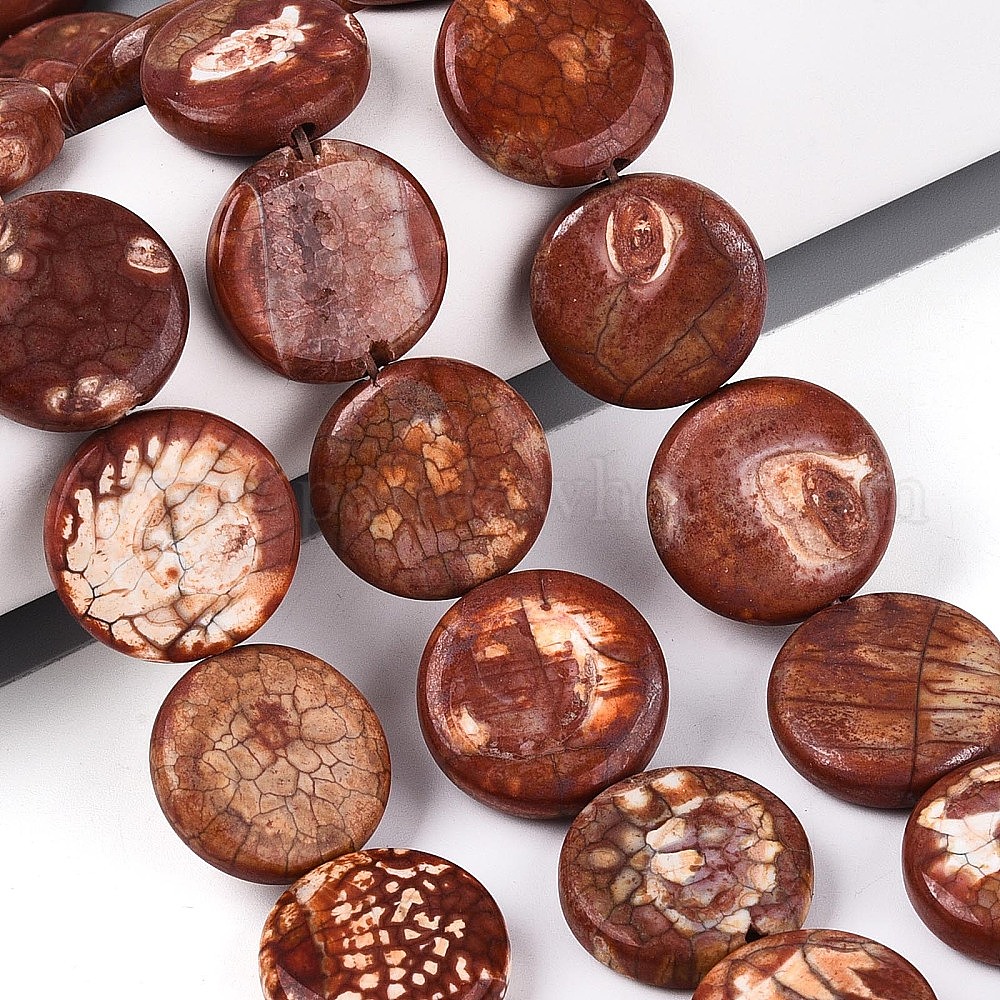 Крашеные бусины из натурального огненного агата с треском, плоско-круглые