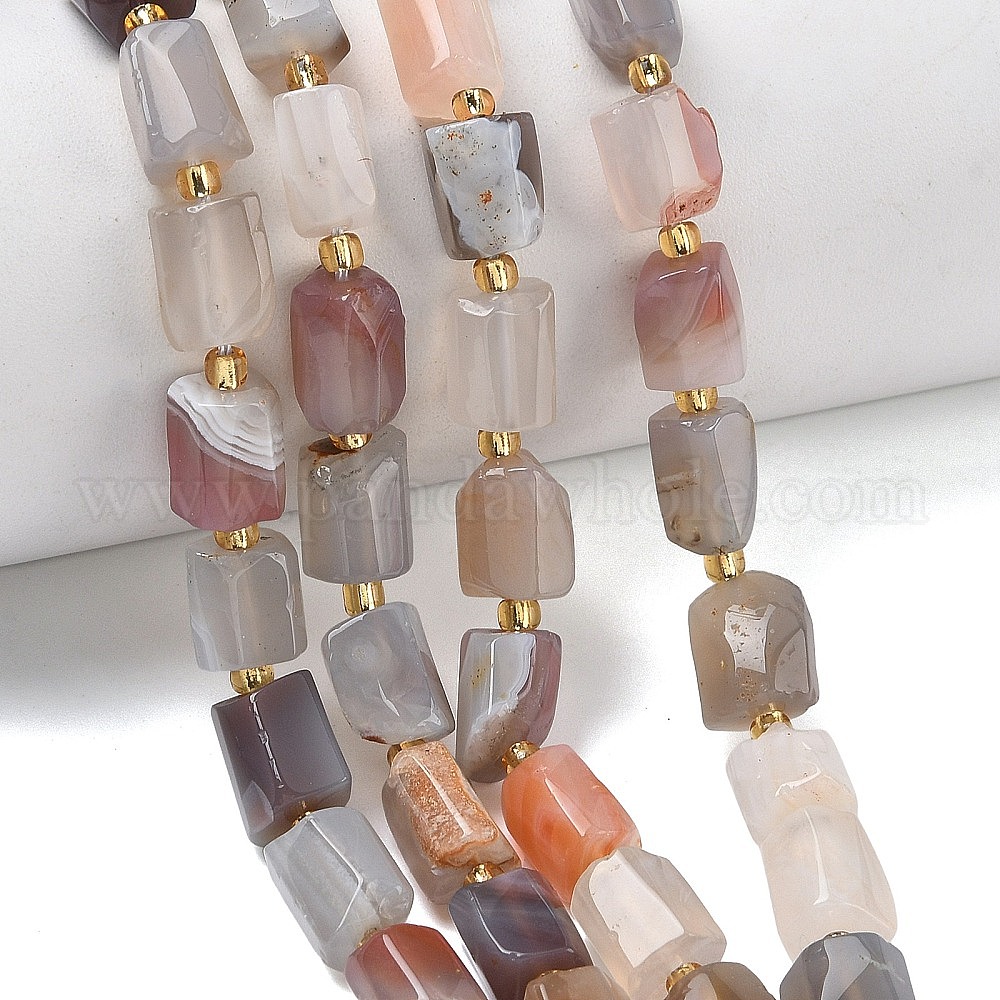 Природные Ботсвана агат бисер нитей, граненые, колонка, с бисером
