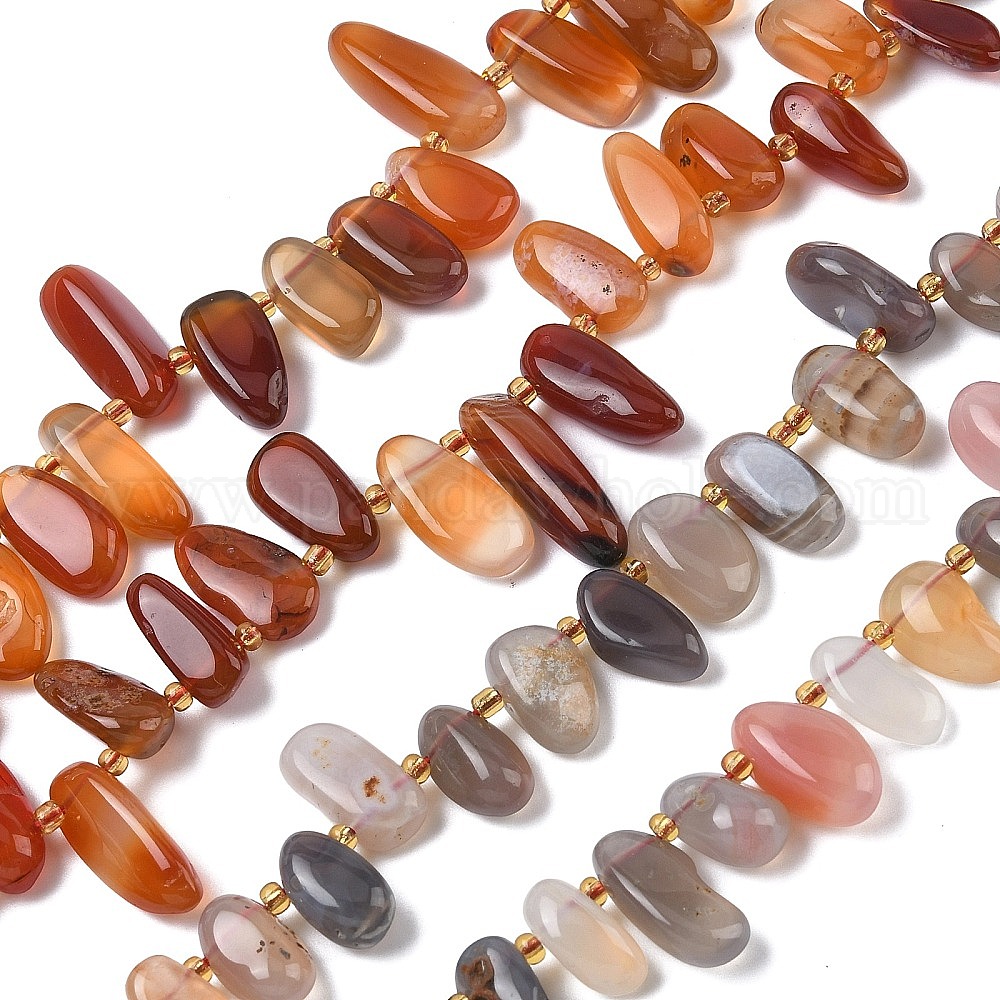 • Red Agate Натуральный красный агат бисер нитей, самородки, Топ пробуренной, с бисером, упавший камень, 12~26x6.5~10 мм, отверстие : 0.7~1 мм, около 37~39 шт / нитка, 14.96'' (38 см).
