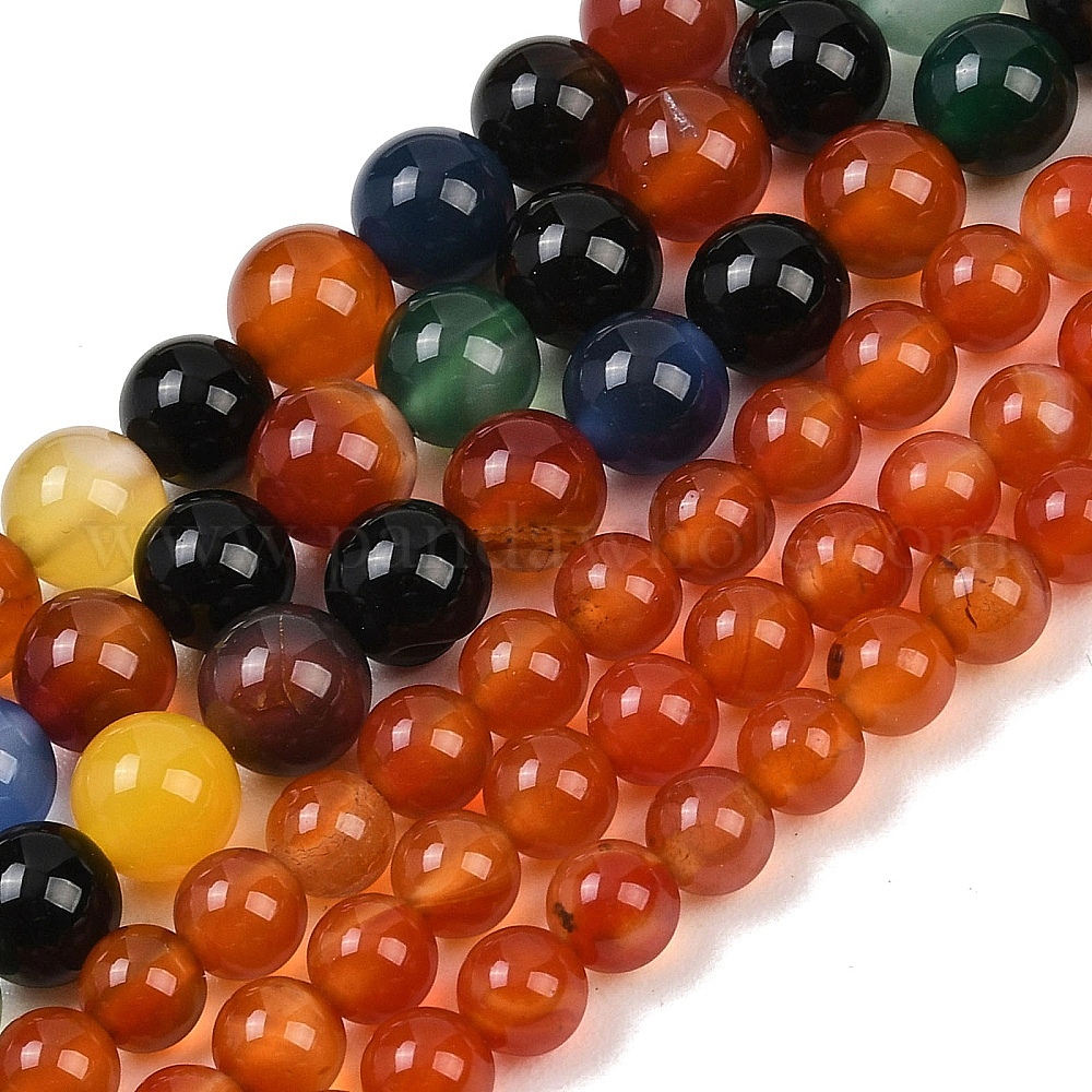 Природный агат бисер нитей, круглые, окрашенная и подогревом
