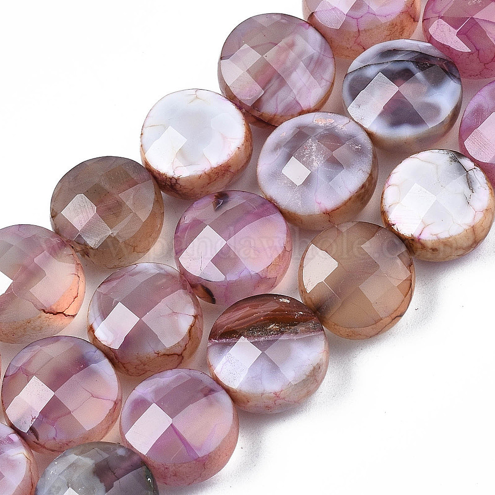 Нити из синтетических бусин агата с эффектом потрескивания, граненые, окрашенные, плоско-круглые