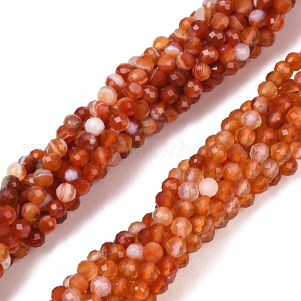 • Полосатый Агат Нити бусин из натурального красного полосатого агата, круглые, граненые, окрашенная и подогревом, 4~4.5 мм, отверстие : 0.6 мм, около 98 шт / нитка, 15.59'' (39.6 см)