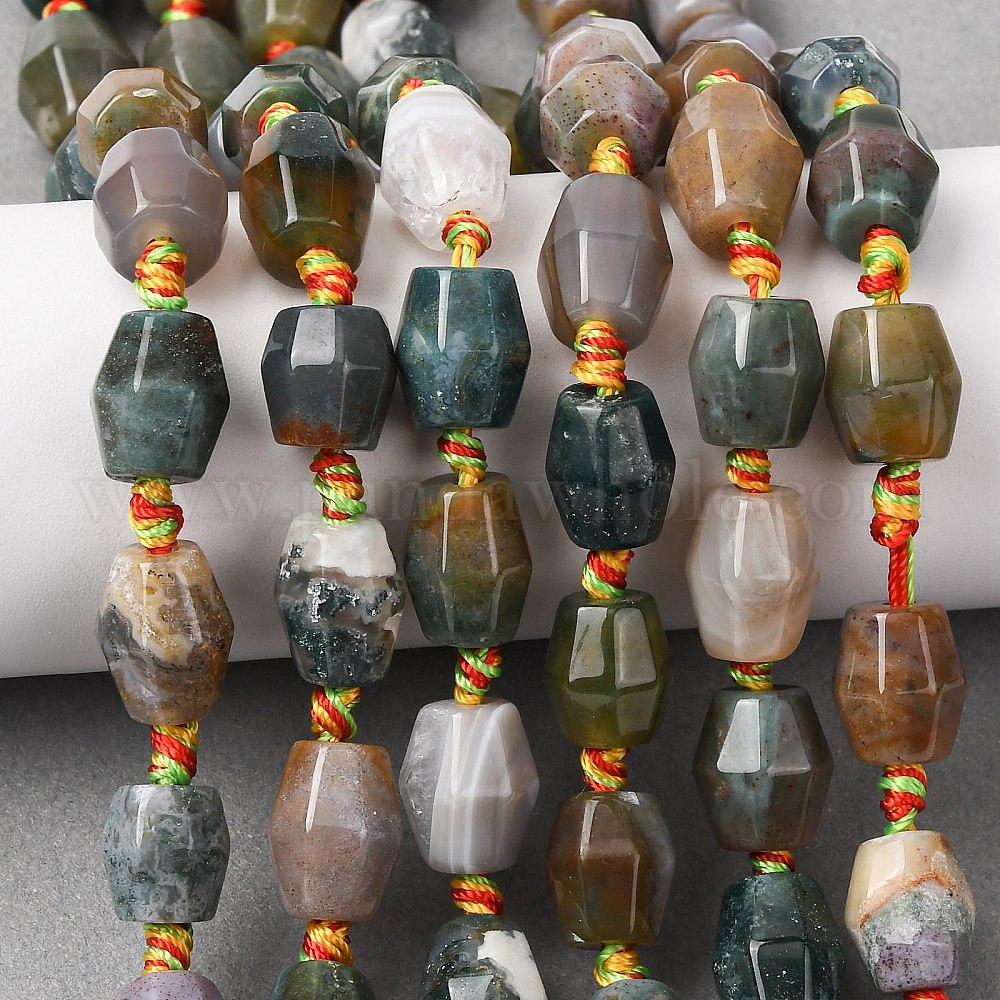 Природного индийского агата бисер нитей, двухконусные, граненые