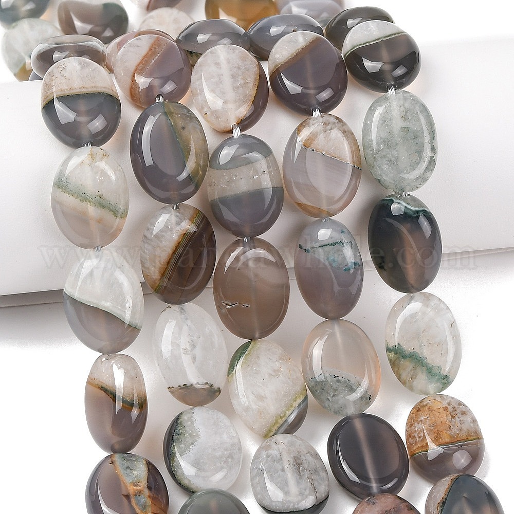 Природный агат бисер нитей, окрашенная и подогревом, Плоско-овальные