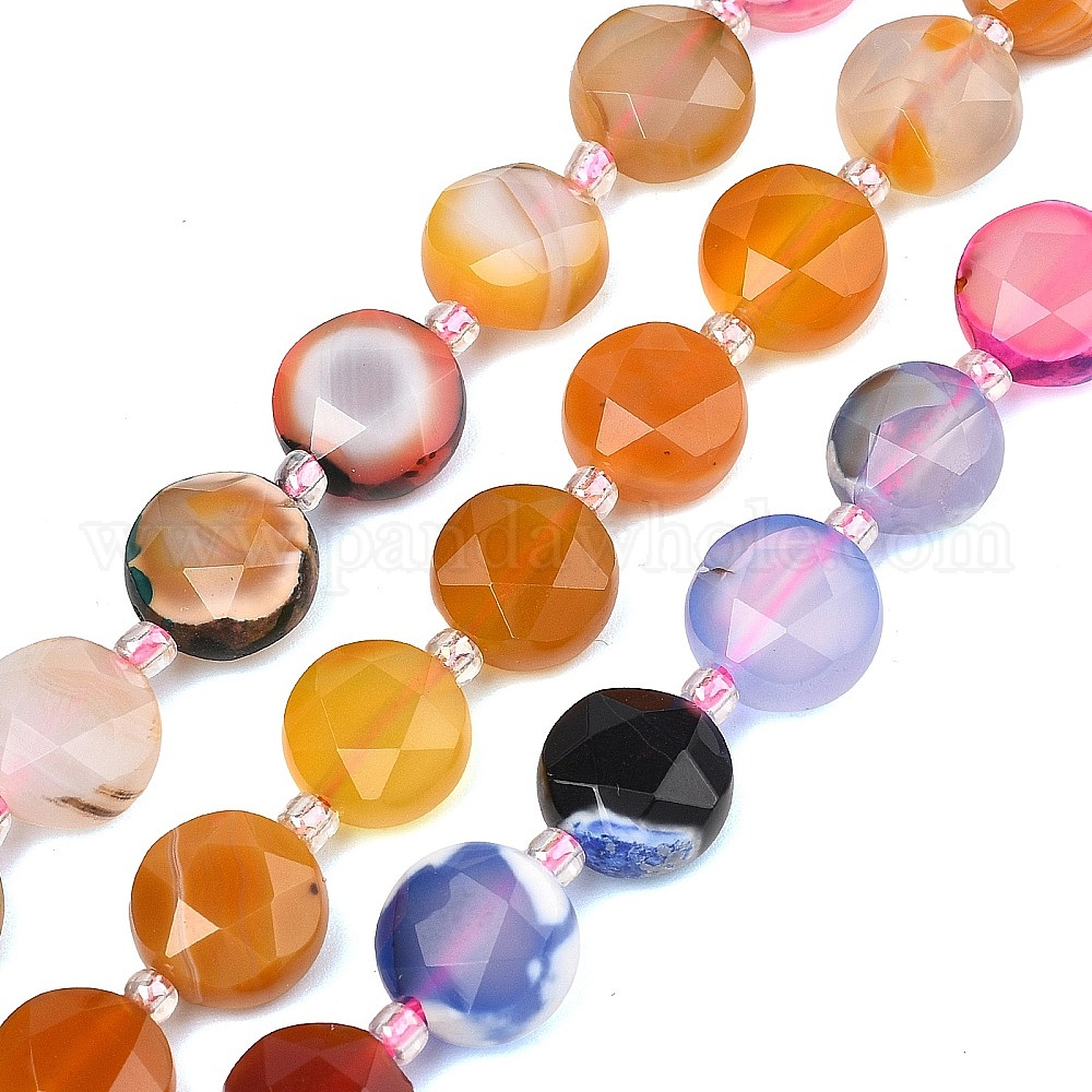 Природный агат бисер нитей, граненый пятиугольный разрез, окрашенная и подогревом, плоско-круглые, с бисером