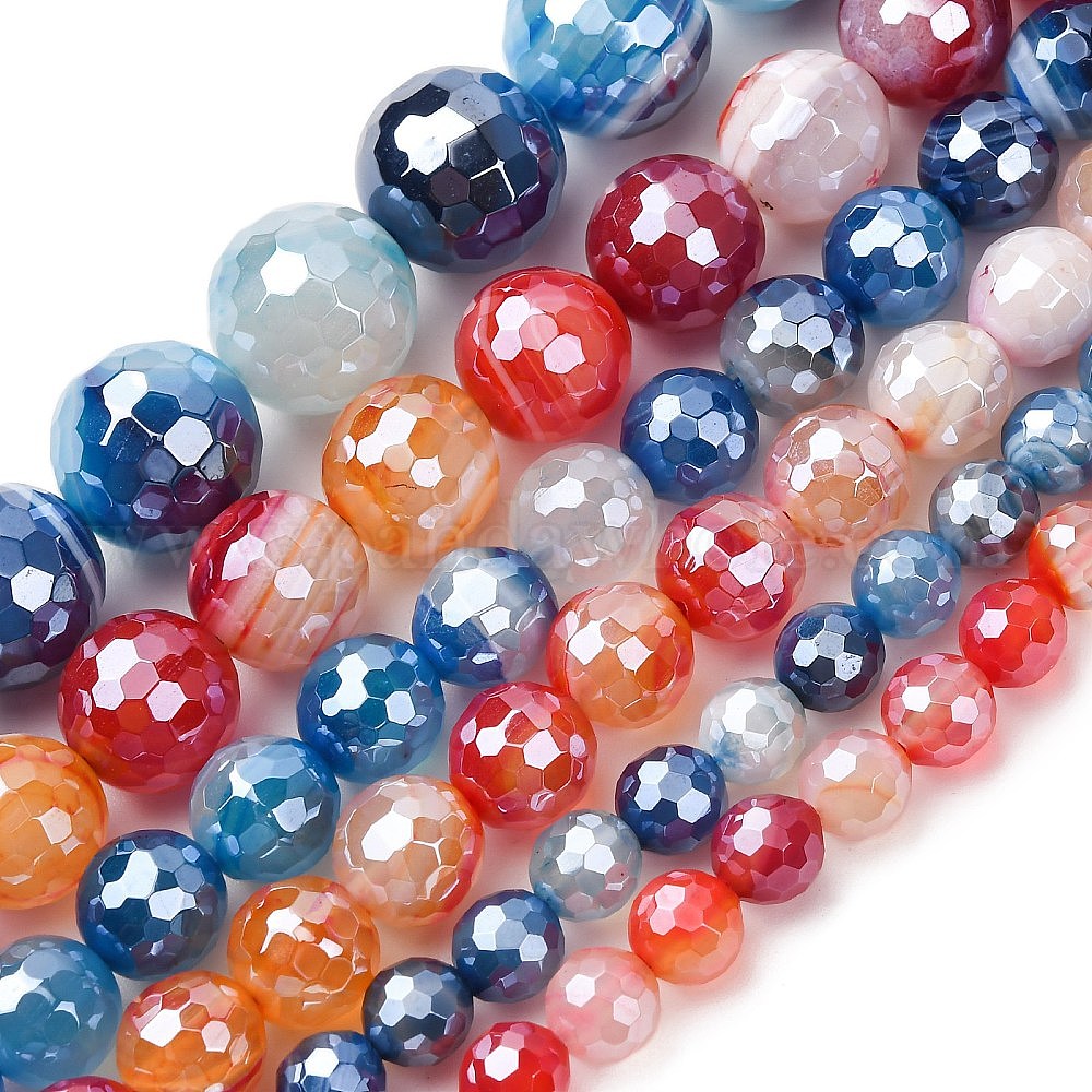 Натуральные полосатые агатовые бусы, круглые, граненые, гальваническое покрытие