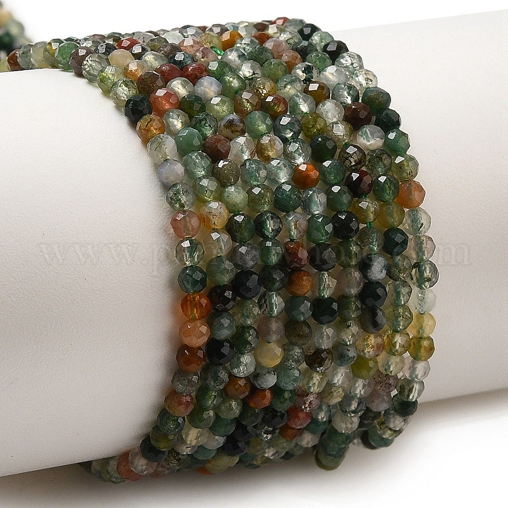 Природного индийского агата бисер нитей, граненые, круглые (03B7EF)