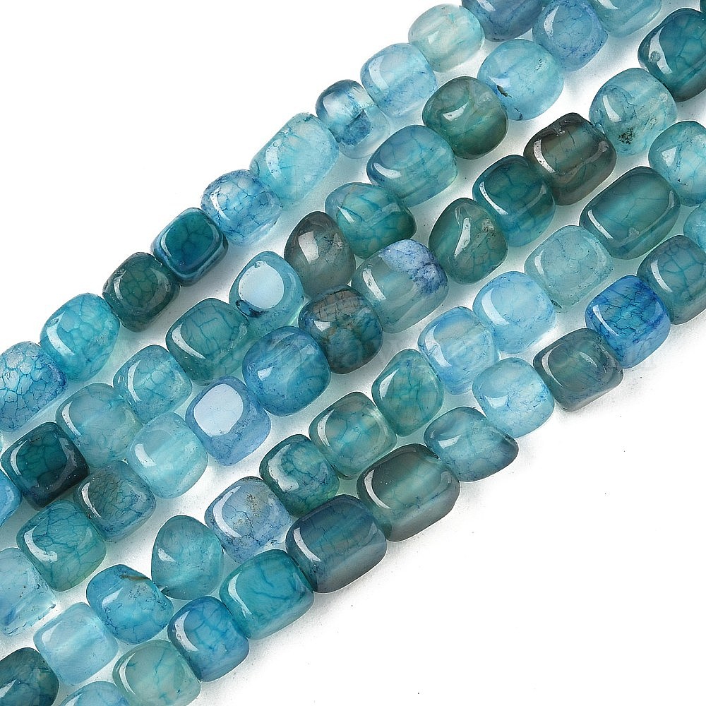 Нити бусин из натурального агата с прожилками дракона (окрашенные и нагретые), кубические