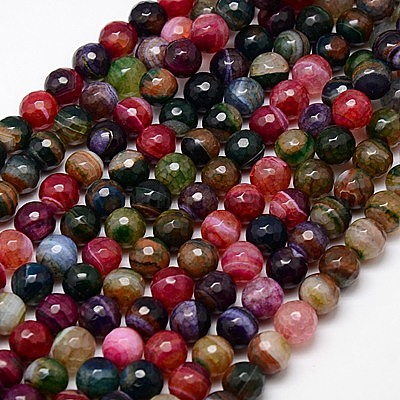 Натуральные полосатые агатовые / полосатые агатовые бусинки, граненые, окрашенные, круглые