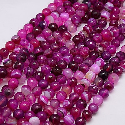 Натуральные полосатые агатовые / полосатые агатовые бусинки, граненые, окрашенные, круглые