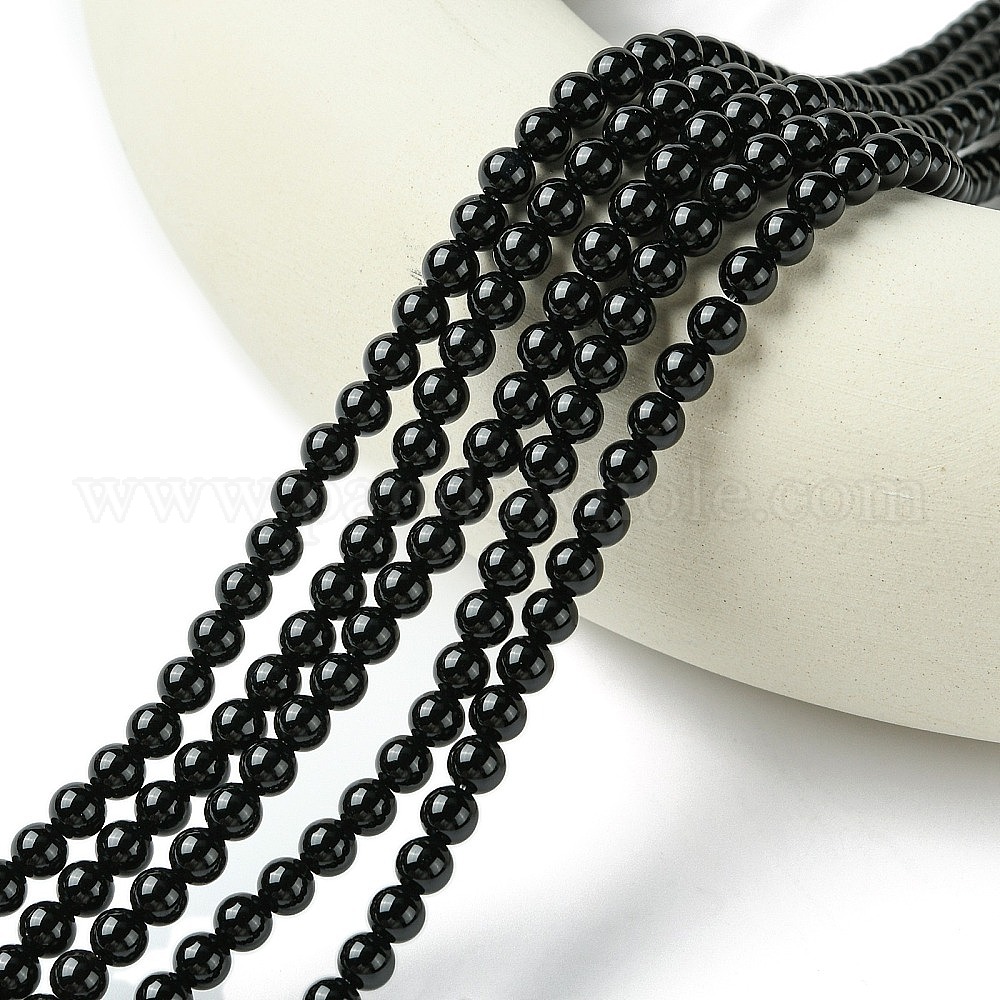 • Черный Натуральный черный агат круглые бусины нити, окрашенная и подогревом, чёрные, 5 мм, отверстие : 1 мм, около 79 шт / нитка, 15.74 дюйм