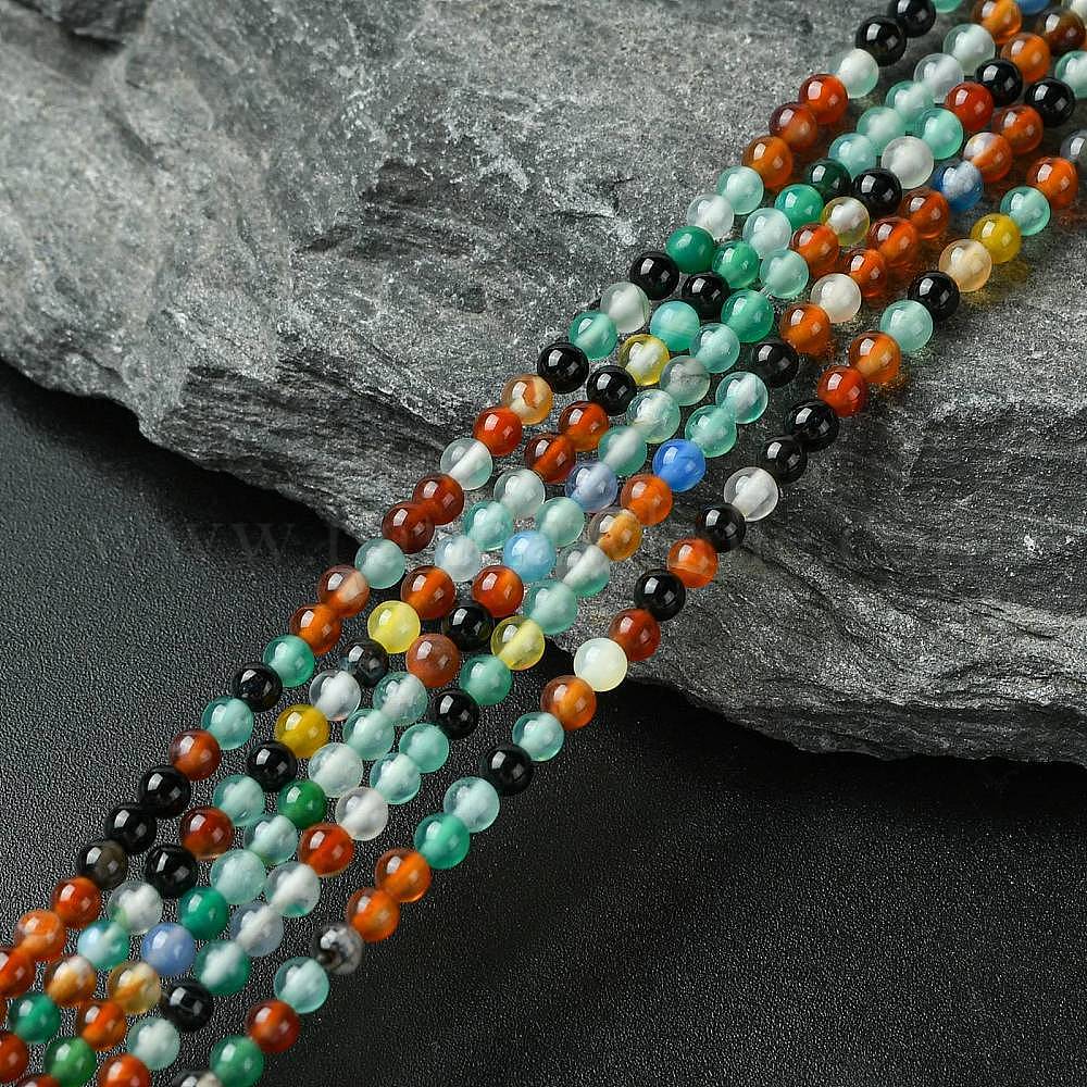 • Многоцветный Агат Естественно агат круглый шарик нити, окрашенные, 3 мм, отверстие : 0.8 мм, около 126 шт / нитка, 15 дюйм