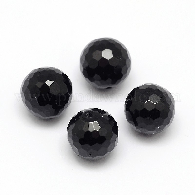Бусины из натурального черного оникса, граненые круглые, окрашенная и подогревом, половине просверлил