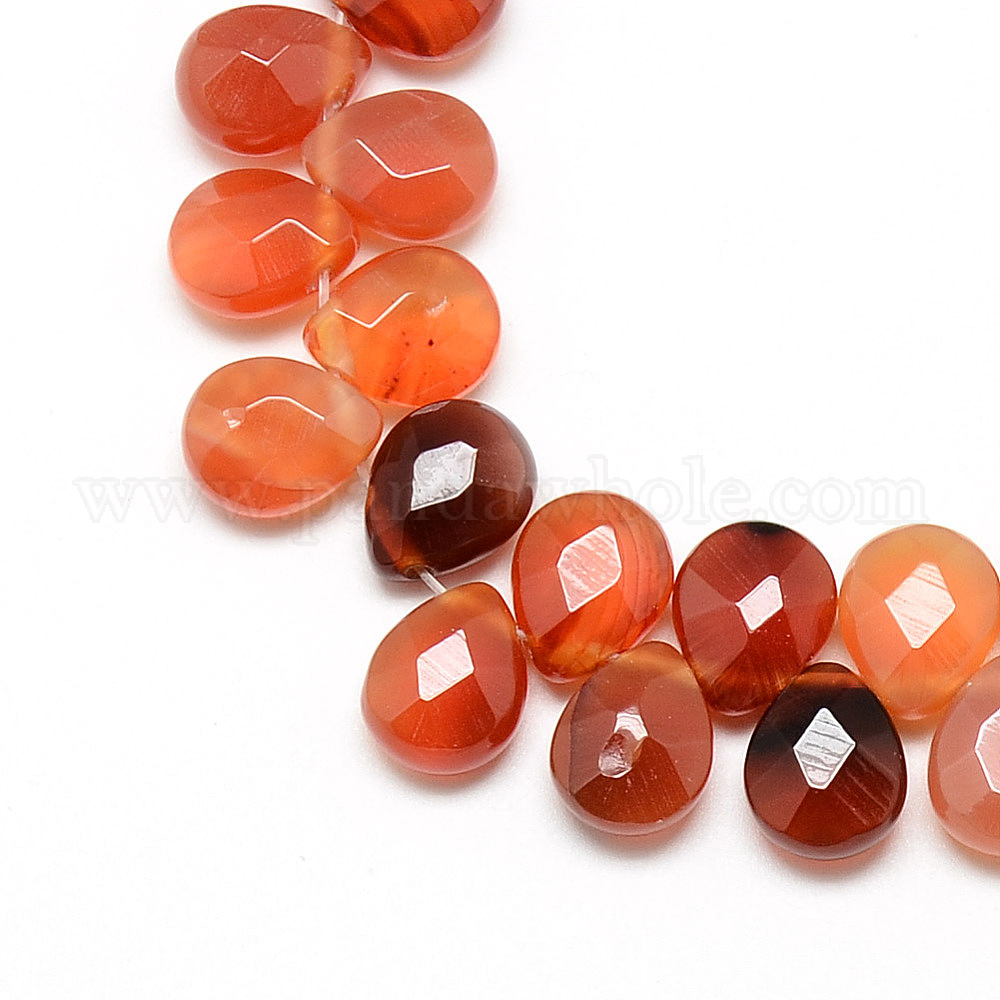 • Red Agate Нити бусин из окрашенного натурального красного агата и драгоценных камней, сверху просверленные бусы, граненые, слеза, 12x9~10x6 мм, отверстие : 1 мм, около 30 шт / нитка, 11.81 дюйм