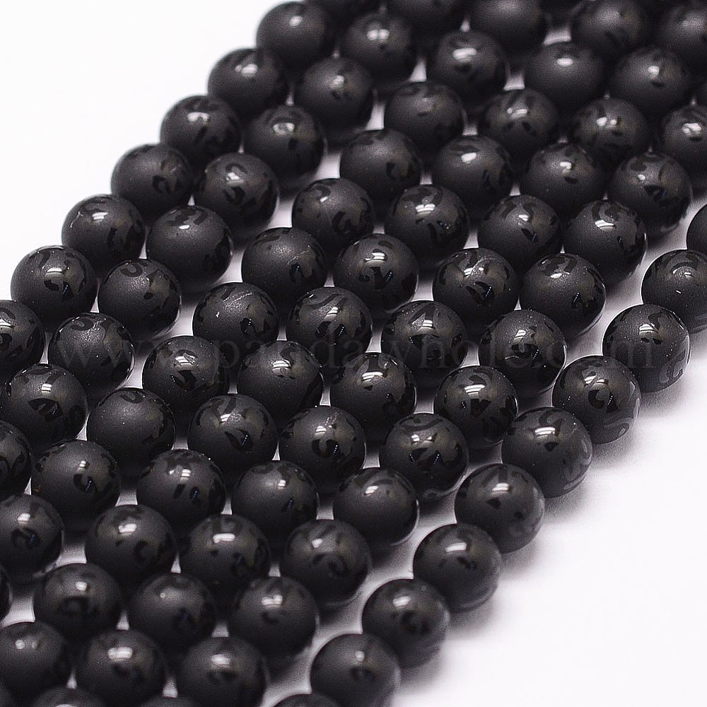 Натуральный черный агат бисер нитей, окрашенная и подогревом, матовые, круглый с шестью словом